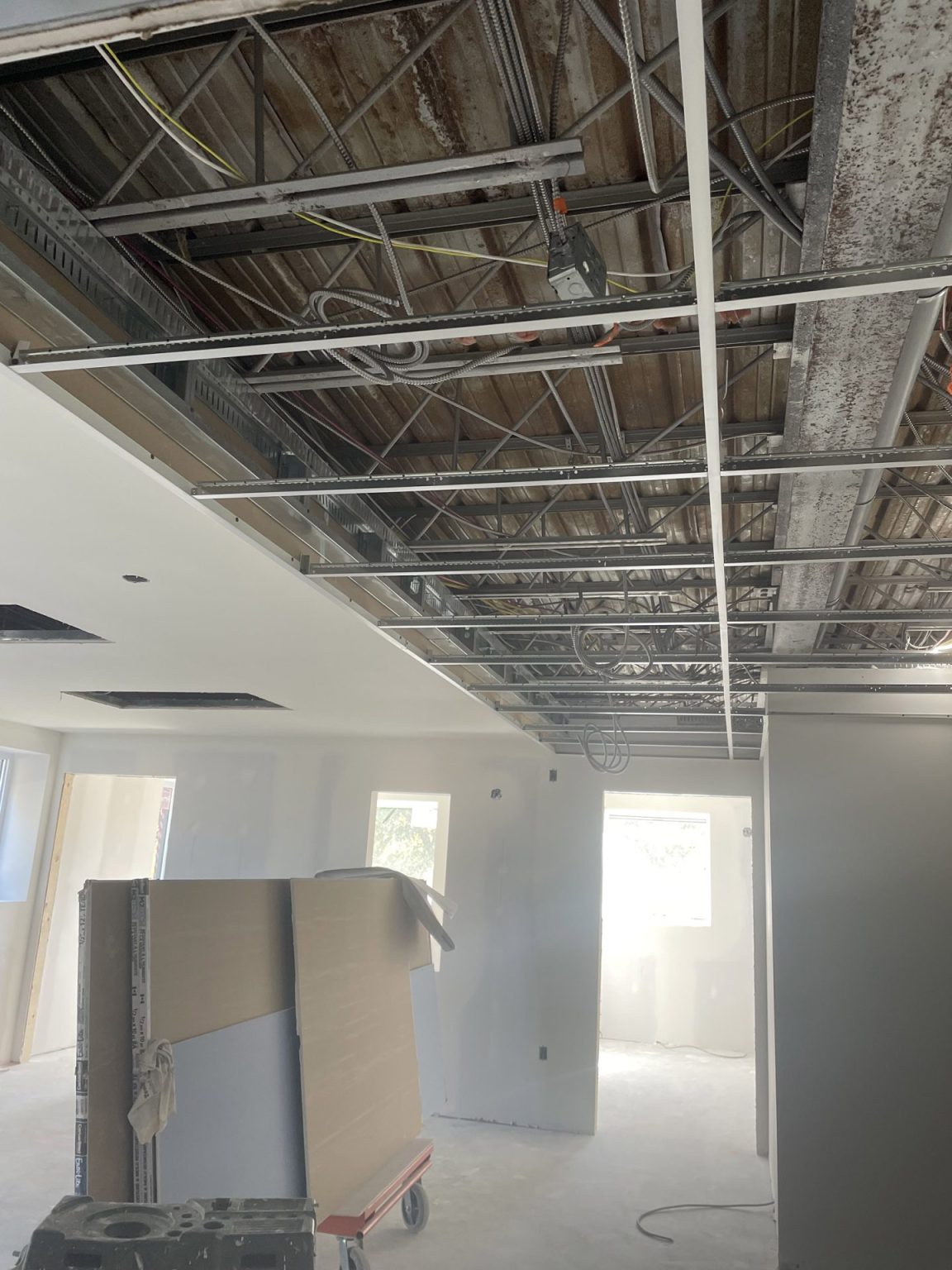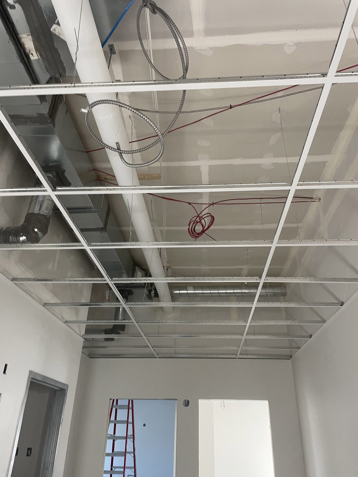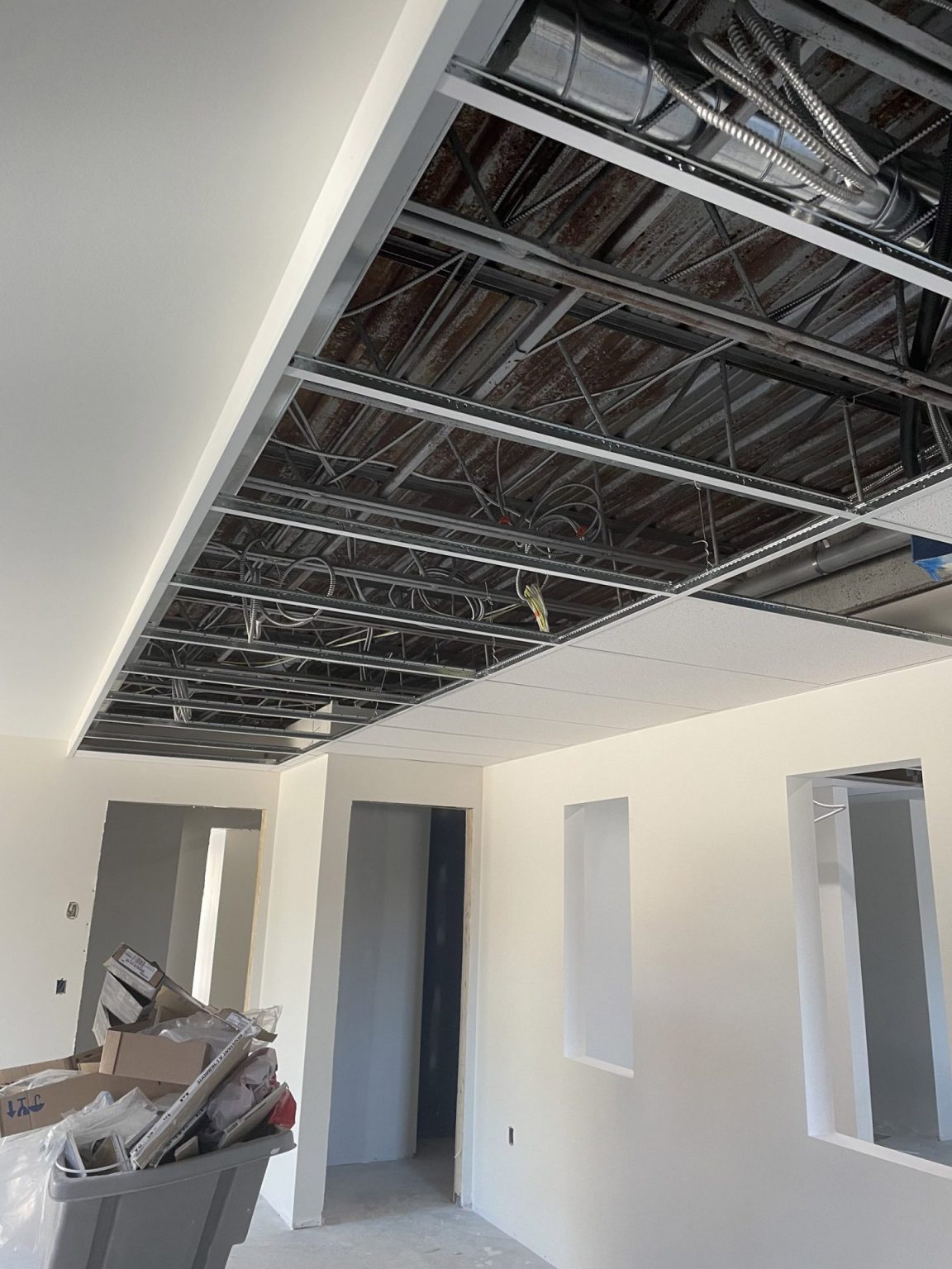 Réalisation de différents travaux de plafonds suspendus et retombées pour des projets résidentiels et commerciaux. L’équipe de R&G Construction assure la pose précise des rails et des tuiles offrant des surfaces esthétiques, uniformes et parfaitement adaptées aux besoins du projet