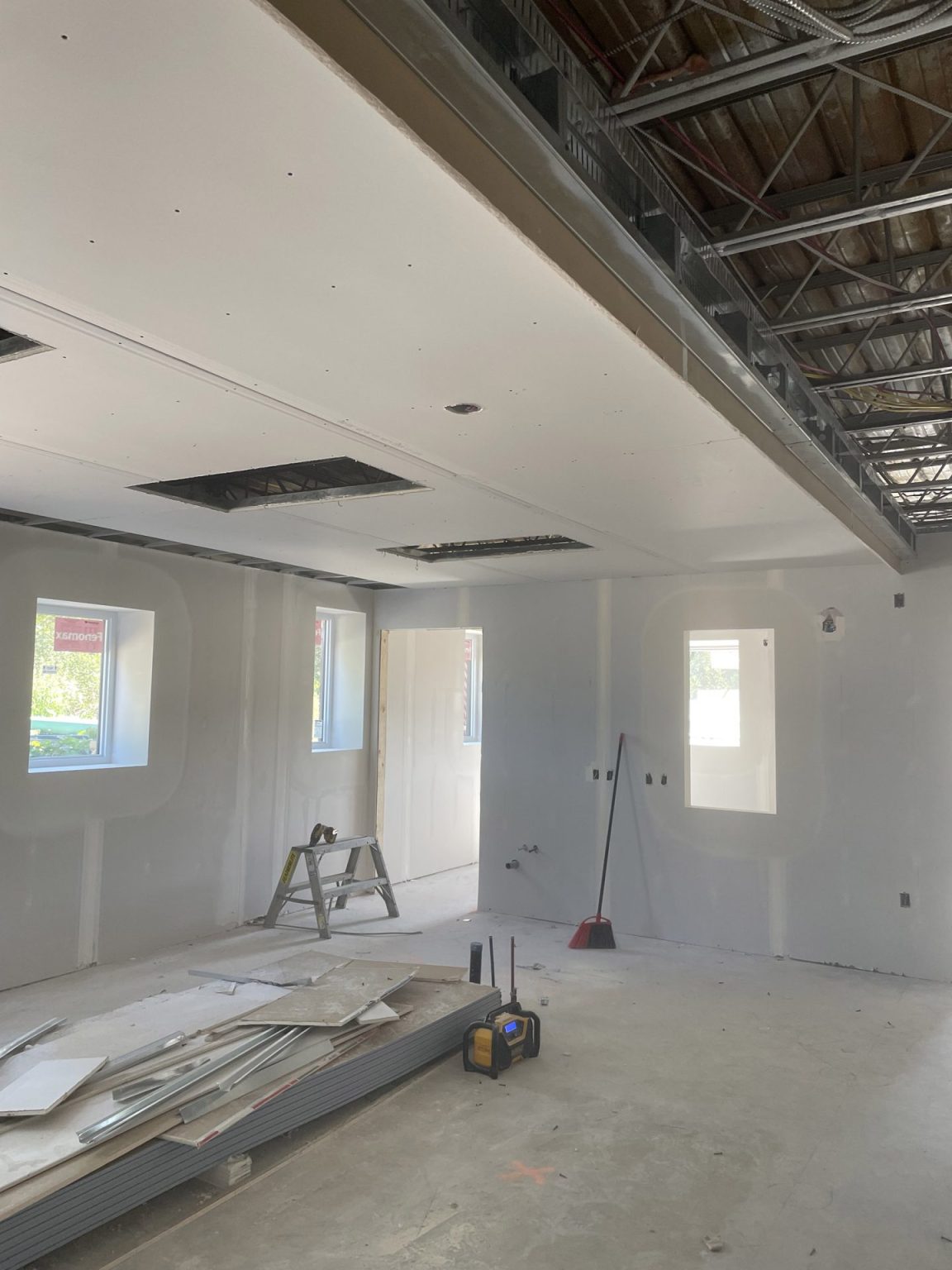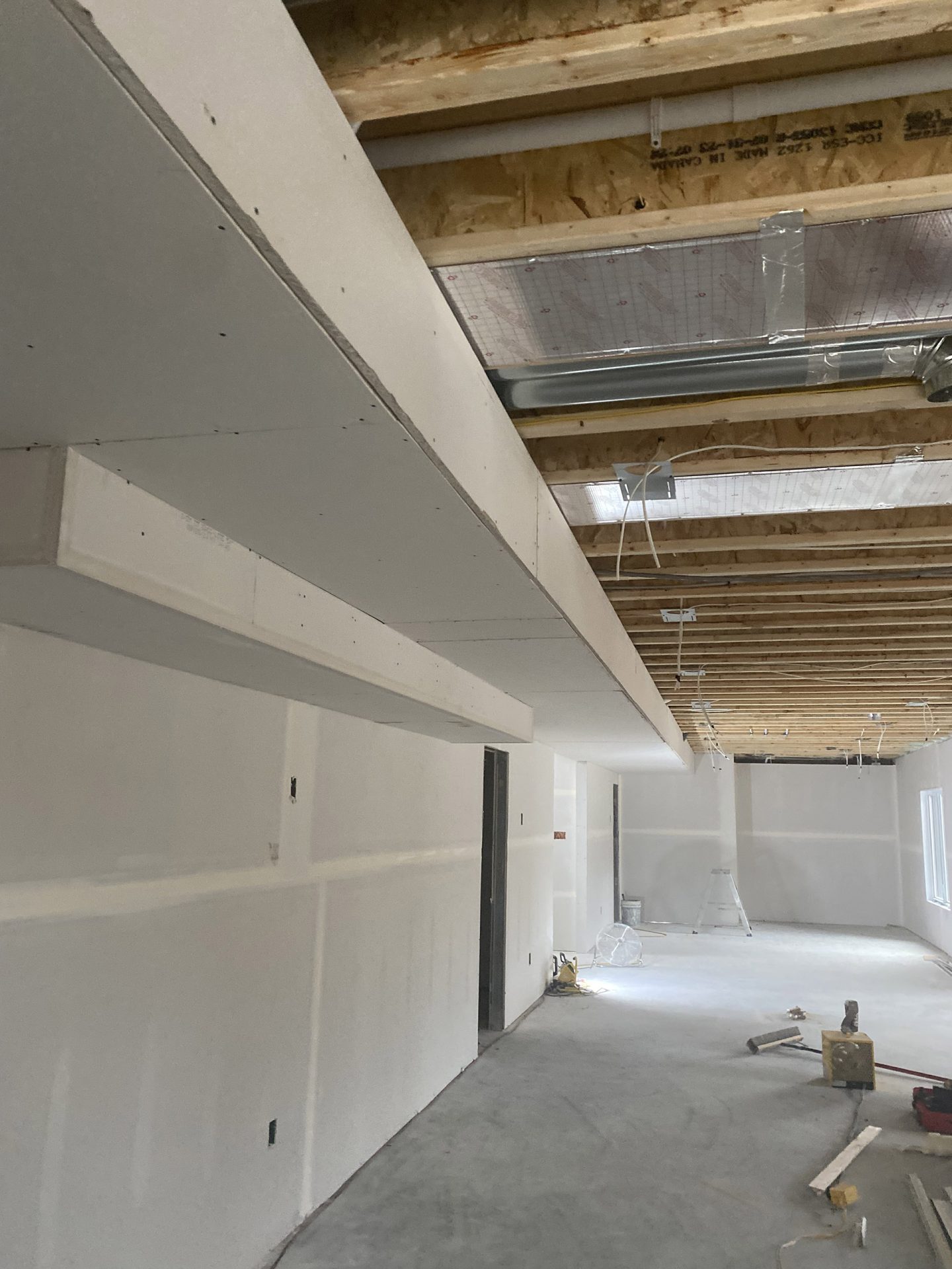 Réalisation de différents travaux de pose de gypse et de tirage de joints pour des projets commerciaux et résidentiels. Nos interventions comprennent l’installation des panneaux de gypse, l’application du composé à joints, le sablage et la préparation des surfaces afin d’obtenir des murs et plafonds parfaitement lisses, prêts pour la peinture. Un travail soigné et une finition professionnelle, assurés par l’équipe de R&G Construction.